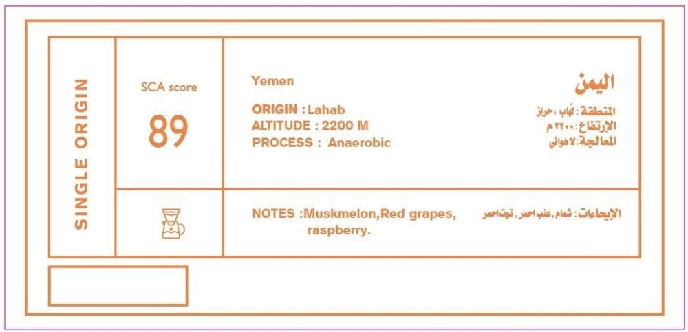 من جبال لَهَب في حراز اليمن، تنمو هذه القهوة في بيئة طبيعيّة نقيّة تُبرز أصالتها وعمق نكهتها. تبدأ الرحلة بنكهات الفاكهة المنعشة كالشمّام والعنب الأحمر، ثم تتطور تدريجيًا إلى لمساتٍ رقيقة من التوت الأحمر، لتُحقق توازنًا جميلًا بين الحلاوة والحموضة في كل رشفة.