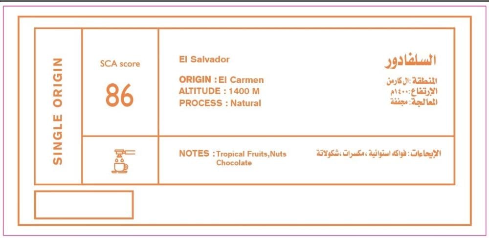 تنحدر قهوة إل كارمن من منطقة سانتا آنا في السلفادور، حيث تُزرع على أرضٍ خصبة وتُجفّف طبيعيًا تحت أشعة الشمس، ما يمنحها طابعها الغنيّ ونكهتها المركّزة.